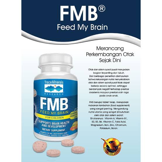 FMB – FEED MY BRAIN merupakan Nutrisi penting bagi Syaraf Otak berbentuk Tablet Hisap Rasa Buah. Bermanfaat untuk memenuhi Nutrisi Otak & Syaraf bagi Balita, Anak-anak, Remaja, Dewasa hingga Lanjut Usia. Dapat juga digunakan untuk Nutrisi bagi Penderita Stroke dan Gangguan Syaraf lainnya.